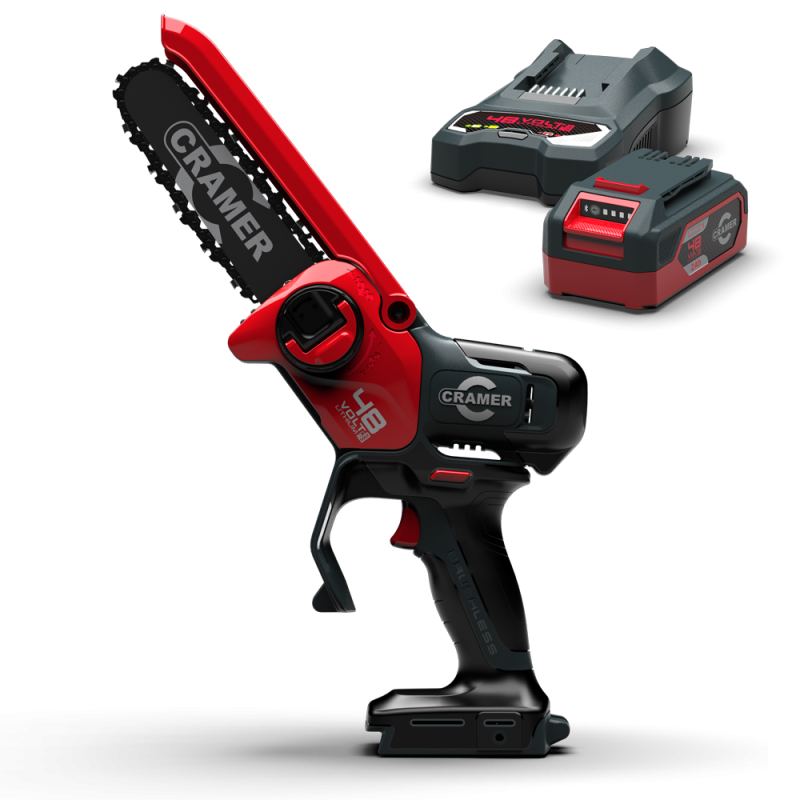 Cramer 48MCSX – lekka pilarka akumulatorowa do cięcia i przycinaniaPilarka 48MCSX to kompaktowe, niezwykle poręczne urządzenie do przydomowych prac ogrodowych, przycinania gałęzi, cięcia drewna opałowego i przygotowywania materiału do kompostowania. Najważniejsze cechy pilarki:✔ Silnik bezszczotkowy 650 W – moc przy zachowaniu lekkościPilarka waży jedynie 1,4 kg, co czyni ją jedną z najwygodniejszych w użytkowaniu w swojej klasie. ✔ Prowadnik i łańcuch OregonMarka Oregon gwarantuje najwyższą jakość cięcia, długą żywotność łańcucha i niskie ryzyko jego rozciągania. ✔ Prędkość łańcucha 7,8 m/sZapewnia szybkie i czyste cięcia, idealne do prac precyzyjnych. ✔ Automatyczne smarowanie łańcuchaNie martwisz się o konserwację — pilarka sama dba o smarowanie układu tnącego. ✔ Bardzo niskie wibracjeZwiększają komfort i bezpieczeństwo, co jest szczególnie istotne przy dłuższej pracy. ✔ Zestaw kompatybilny z bateriami serii 48VTo oznacza, że w razie potrzeby możesz korzystać z dowolnego akumulatora Cramer. |