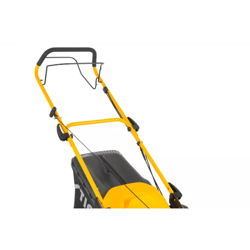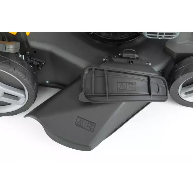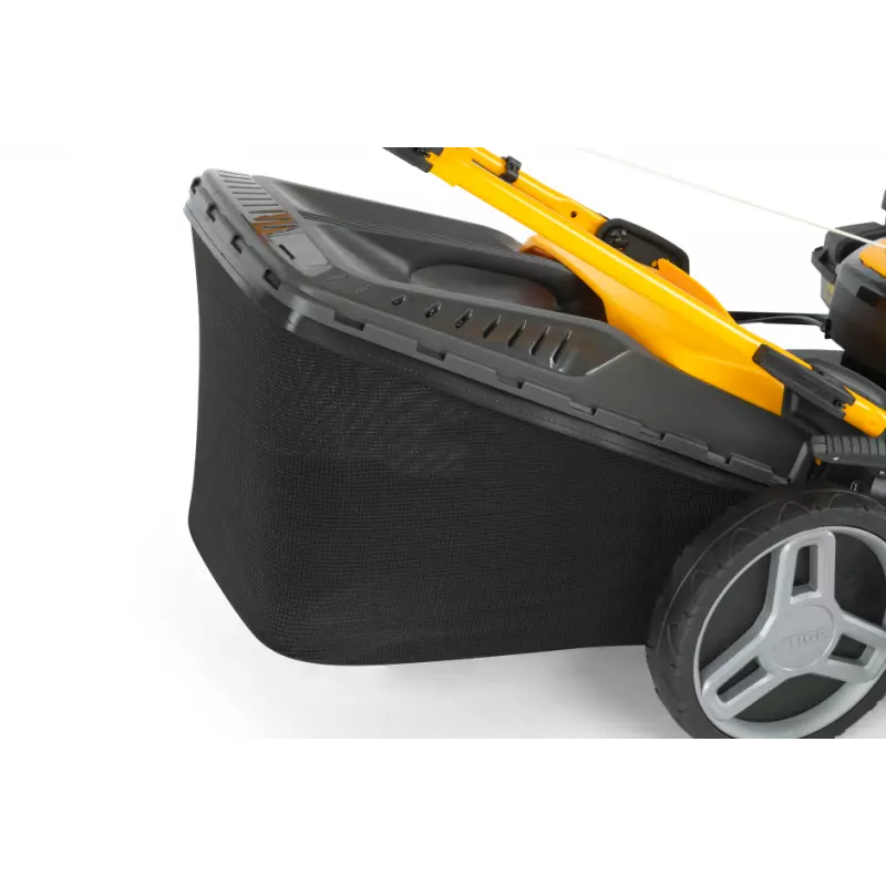 Kosiarka została wyposażona w duży, 60-litrowy kosz hybrydowy ze wskaźnikiem napełnienia, który znacząco ogranicza konieczność częstego opróżniania. Specjalna konstrukcja zapobiega rozsypywaniu trawy podczas zdejmowania kosza.