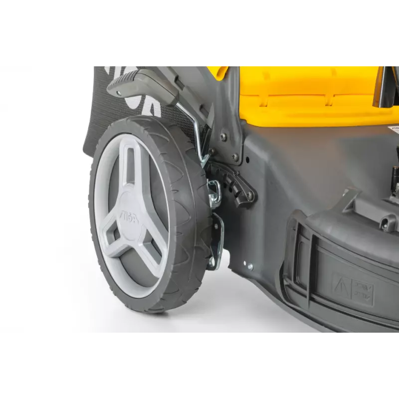 Model został wyposażony w nowoczesny silnik **STIGA ST 140 OHV Autochoke o pojemności 139 cm³ i mocy 2,20 kW, który zapewnia stabilną pracę oraz łatwe uruchamianie. Dzięki napędowi na koła koszenie staje się znacznie mniej męczące, szczególnie na większych powierzchniach oraz nierównym terenie.